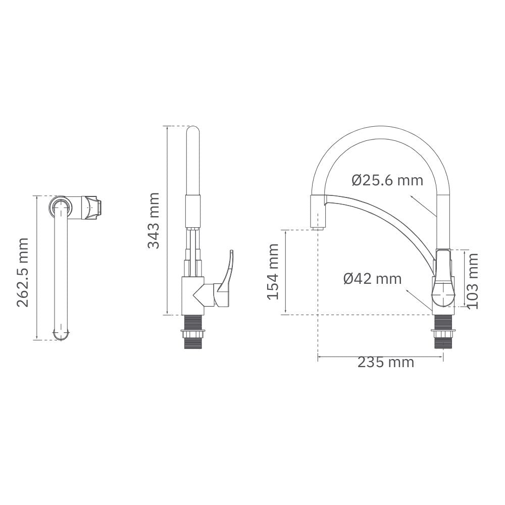 Altura de 34.3 cm con brazo giratorio 360° - Instalación de un solo hueco.